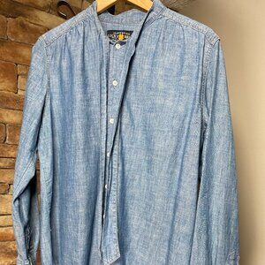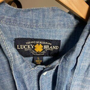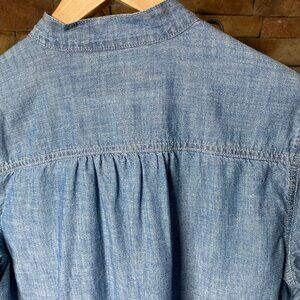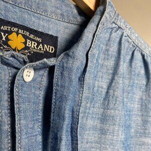 Lucky Brand Tie Bow collarless Denim Blouse Large