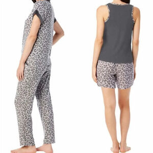 Lucky Brand Women’s 4-Piece Pajama Set in Gray Leopard Size XL