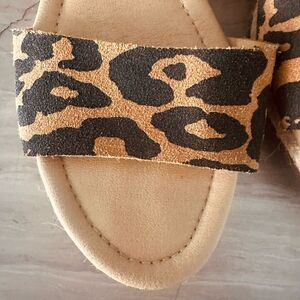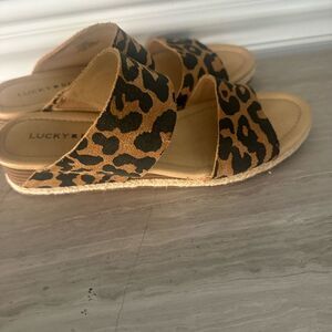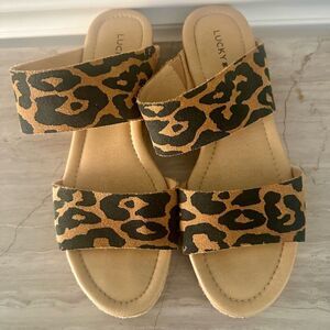 Lucky Brand Wyntor, leather leopard print wedge sandals.