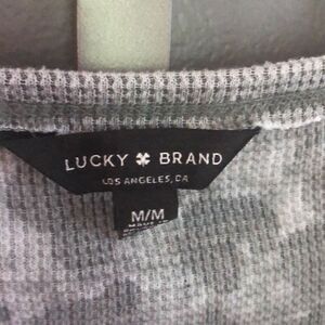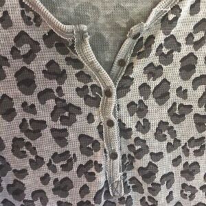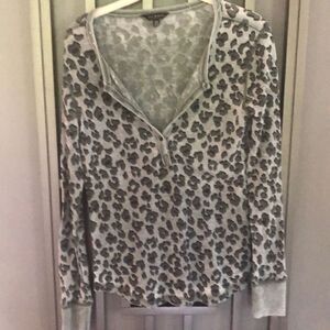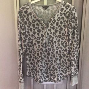 Lucky Brand leopard Gray distressed thermal long sleeve top size M