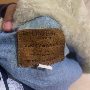 Lucky Brand's trucker jacket in cozy faux sherpa brings a plush feel to all-American denim-jacket styling.