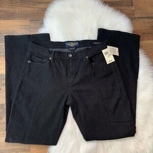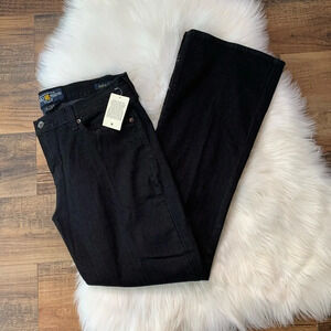 Black bootcut jeans. 5 pocket. Zipper and button closure.