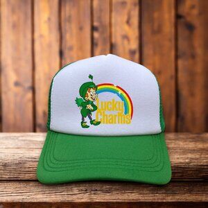 Lucky Charms Mens Trucker Hat Green Snapback Retro Vintage 80s Cereal Ball Cap