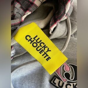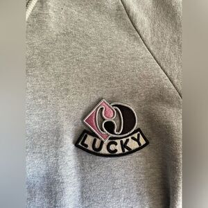 Lucky Chouette Logo Gray Pink Pullover Casual Sweatshirt Midi Dress Sz 36 S Cap