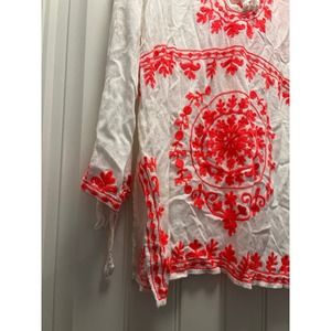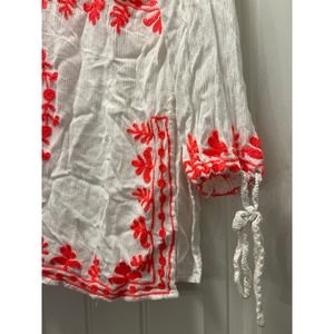 Lucky & Coco Women’s Embroidered & Tasseled Swim Cover Top Size S White Pink