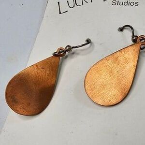 Lucky Dog Studios Copper Enamel Swirl Teardrop Earrings Handmade Charlotte, NC
