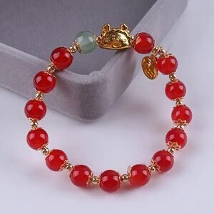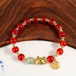The Lucky Dragon Red Bead Bracelet with Synthetic Jade Bead is a stunning fusion of tradition and style. It features rich red beads paired with beautifully polished synthetic jade beads, offering a harmonious balance of bold color and serene elegance.