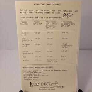 Lucky Duck Designs Christmas Wreath Quilt Pattern Table Runner Placemat Pillow