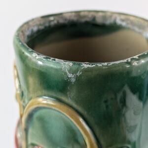 Condition: Glaze shows signs of crazing, some defects in finish assumed to be from when the vase was made. Has some buildup around the rim of the vase.