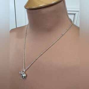 Lucky Elephant Shiny Silver Toned Pendant Necklace