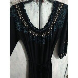 Lucky Embroidered Puff Sleeve Dress Black Md Boho Cottagecore Feminine Y2k