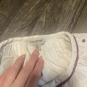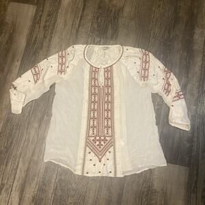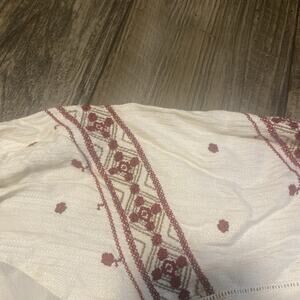 Lucky Embroidered Tunic Top Boho Women’s medium Red Shirt Hippie Ivory