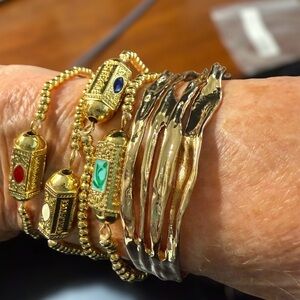 This pretty little bracelet just makes you feel good all over and has that antique look. It is stretched from approximately 6 inches to 7 1/2 inches. Catherines Is a closet for anyone who is looking for something different , unique and high-quality. My shop is named after my grandmother who taught me how to shop. I only sell my own possessions that focus on eclectic style for every day wear. Everything comes from my smoke free home.My mission is to make sure you love your purchase. If you are looking for one of a kind affordable items, this is the place to shop. I welcome all reasonable offers! All packages will be photographed prior to mailing so that you can see our professional packing.