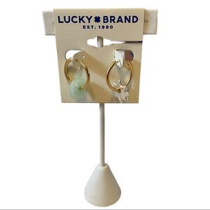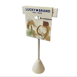 Lucky Gold Toned Hoop Dangle Earrings w/ Lt. Green round stone & Silver star.