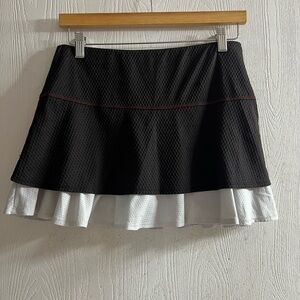 Lucky In Love Black Red Tennis Pickleball Golf Tiered Ruffle Skirt Women Sz M