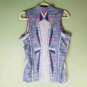 Lucky In Love Womens Blue White Pink Multicolor Sleeveless Athletic Golf Tennis Zip Up Performance Tank Top Size Large