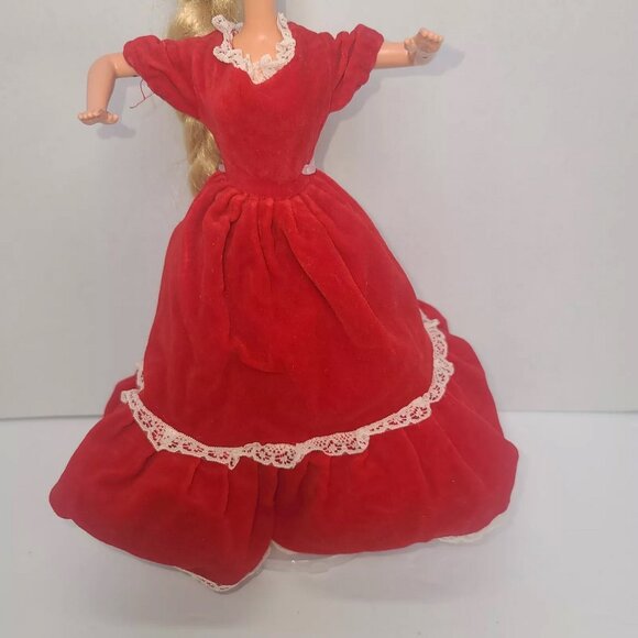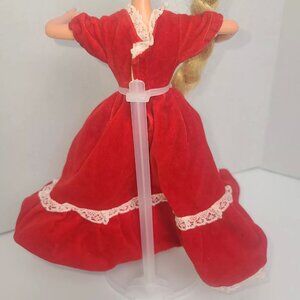 Vintage Red velvet with white trim long dress that fit Barbie sized dolls.