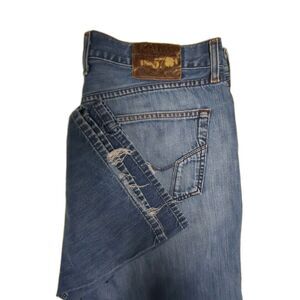 Lucky Jeans by Gene Montesano Men Santa Cruzer Jean 34 Made USA Wiskers Distress