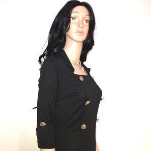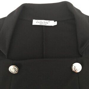 Lucky Lady Women's Short Sleeve Black Dress with Golden Buttons - Size Medium