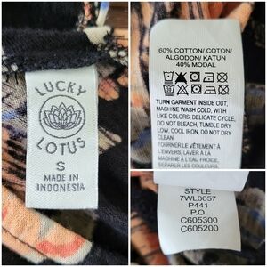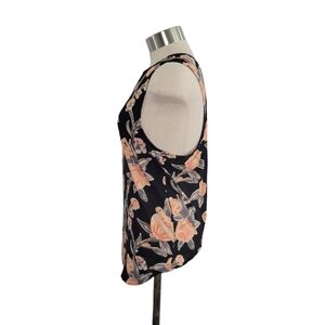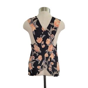 Lucky Lotus Black & Orange Floral Open Back Sleeveless Top Blouse Womens Size S