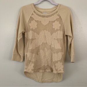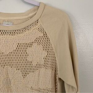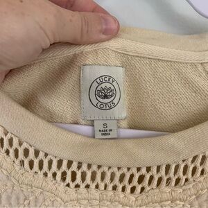 Lucky Lotus Cream Embroidered Lotus Floral Print Crochet Sweater Size Small