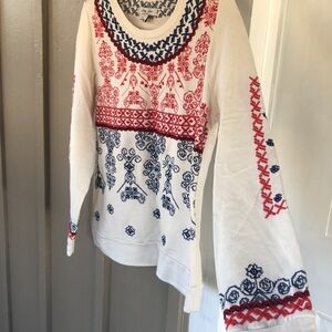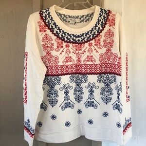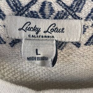 Lucky Lotus Embroidered Top Sweatshirt Womens Size L