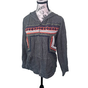 Lucky Lotus Embroidered Zip Hoodie Gray Southwest Boho Cotton Jacket Size Large
