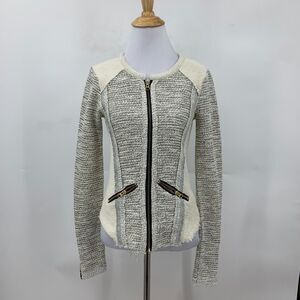 Lucky Lotus Lucky Brand Jacket Womens XS Extra Small Tweed Metallic Zip Up Panel