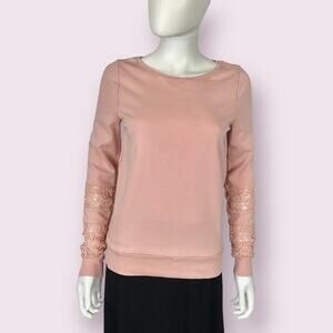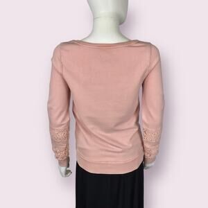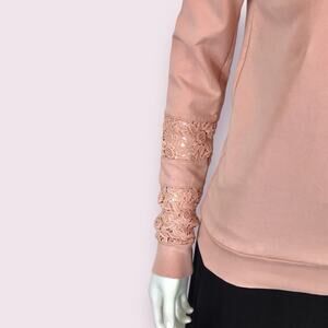 Lucky Lotus Pink Lace Tee Detail Long Sleeved Thick 100% Cotton Top