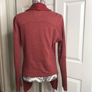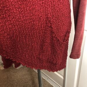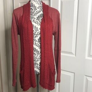 Lucky Lotus Red Pockets Long Front Open Cardigan M Hole