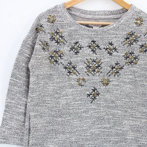 Lucky Lotus Sweater Womens Gray Pullover Knit 3/4 Sleeve Crewneck Size XS