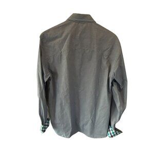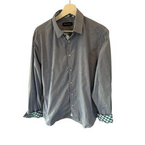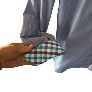 Lucky Luciano Blue Microcheck Shirt Men's M Plaid Cuff Casual Button Down
