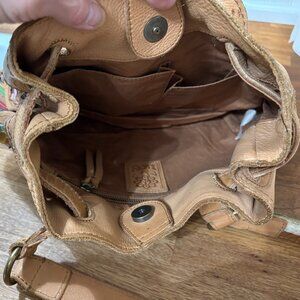 Lucky Multicolor Leather Striped Satchel Shoulder Bag Purse Boho EUC Hippie