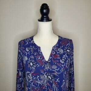 Boho meets classic in this Lucky Brand paisley blouse, perfect for casual days or effortless layering. Featuring a split neckline with functional buttons, 3/4 sleeves, and a rounded hem, this pullover top offers a relaxed fit with timeless appeal. The multicolor paisley print adds a touch of Americana charm, while the lightweight fabric keeps things breezy and comfortable.