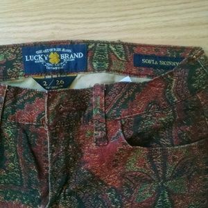 Lucky brand paisley Sofia skinny jeans. Like new. Perfect for fall! Cute with a chunky sweater and a pair of Oxfords.