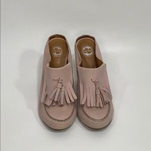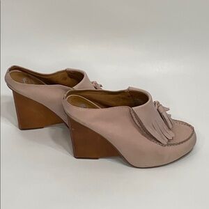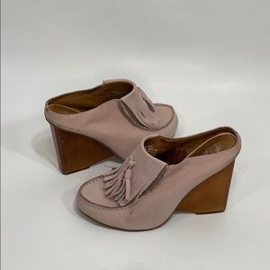 Lucky Penny - Towering Tassel Mules, Leather /Wood