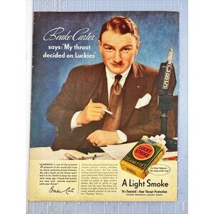 Lucky Strike Cigarettes "Boake Carter says My Throat Decided" Vintage Print Ad 1937 Radio Guide Magazine July 10, 1937 About 10.5 x 13.5 Inches. Carefully shipped.