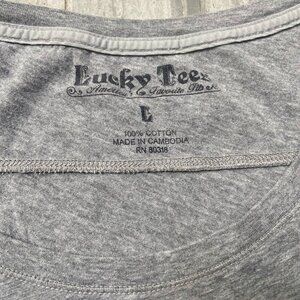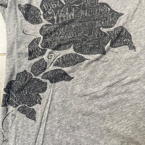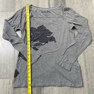 Lucky Tees Cotton Long Sleeve Scoop Neck Floral Print Tee Shirt Gray Size Large