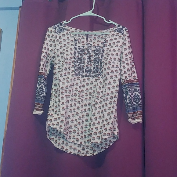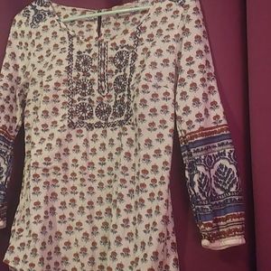 Orange and blue print Blue embroidery on chest