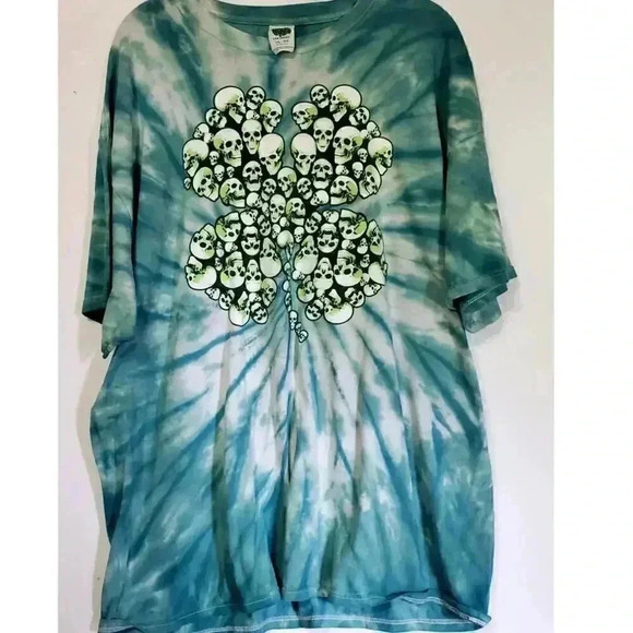 Lucky T-shirt! Green tye dye with skull 4 leaf clover mens 2XL stay lucky !