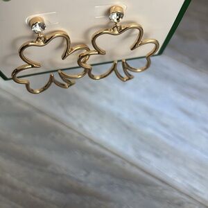 Lucky Vibes gold cutout Shamrock clear stone post earrings