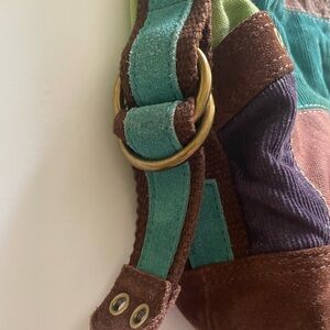 Lucky Vintage Large Suede/Canvas Adjustable Strap Exquisite Patchwork Tote/Bag