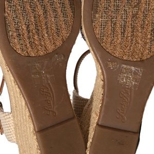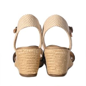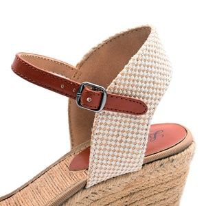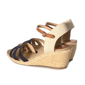Deep blue espadrilles sandals have a round toe and 2.50 inch wedge heel
