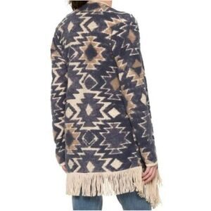 Lucky brand Aztec print fringed brushed knit cardigan M