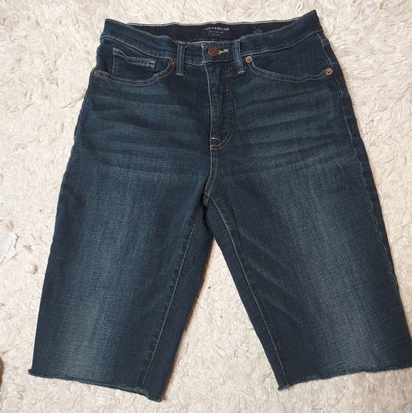 Lucky brand high-rise bridgette boot Bermuda Jean shorts, knee length, stretch, unfinished hem