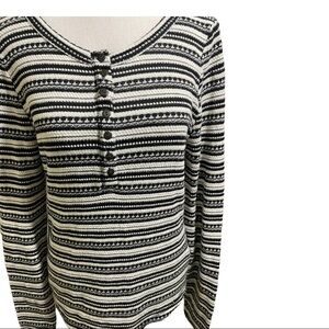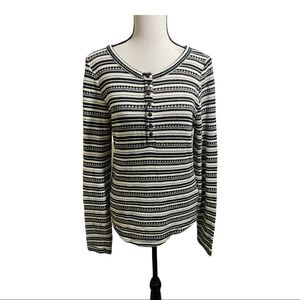 Lucky brand Henley Chloe thermal striped black and white size Large. Long sleeve half button pullover.