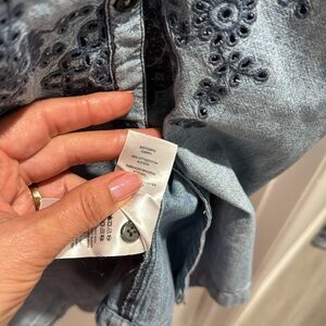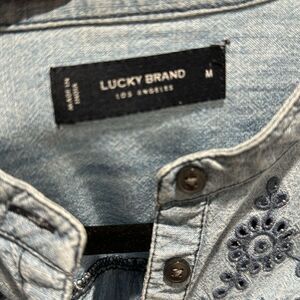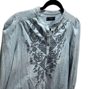 Lucky brand Women embroidered long sleeve button-down blouse Medium Blue