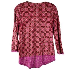 Multi print, v neck, long sleeve top, button cuff, tiny hole last photo/bottom front