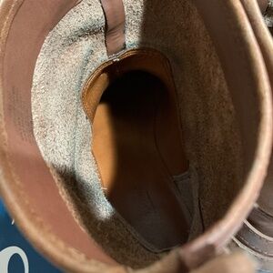 Lucky brand full leather boots with buckle accents in brushed gold. Burton winter haze color. Size 9 women’s. Used in good condition.