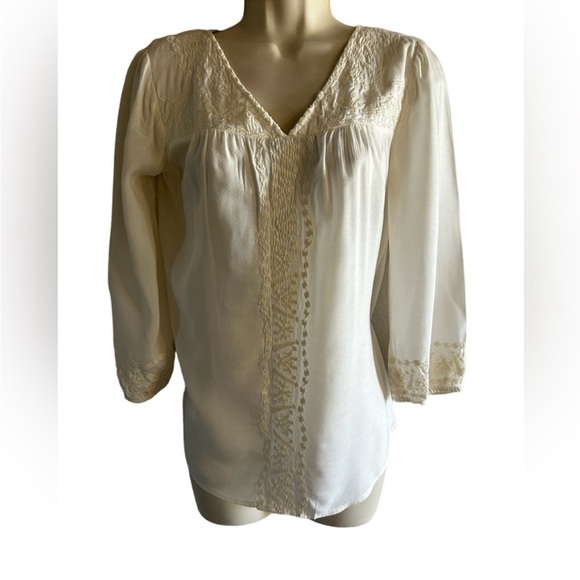 Lucky brand cream color 3/4 sleeve top with V neck size M